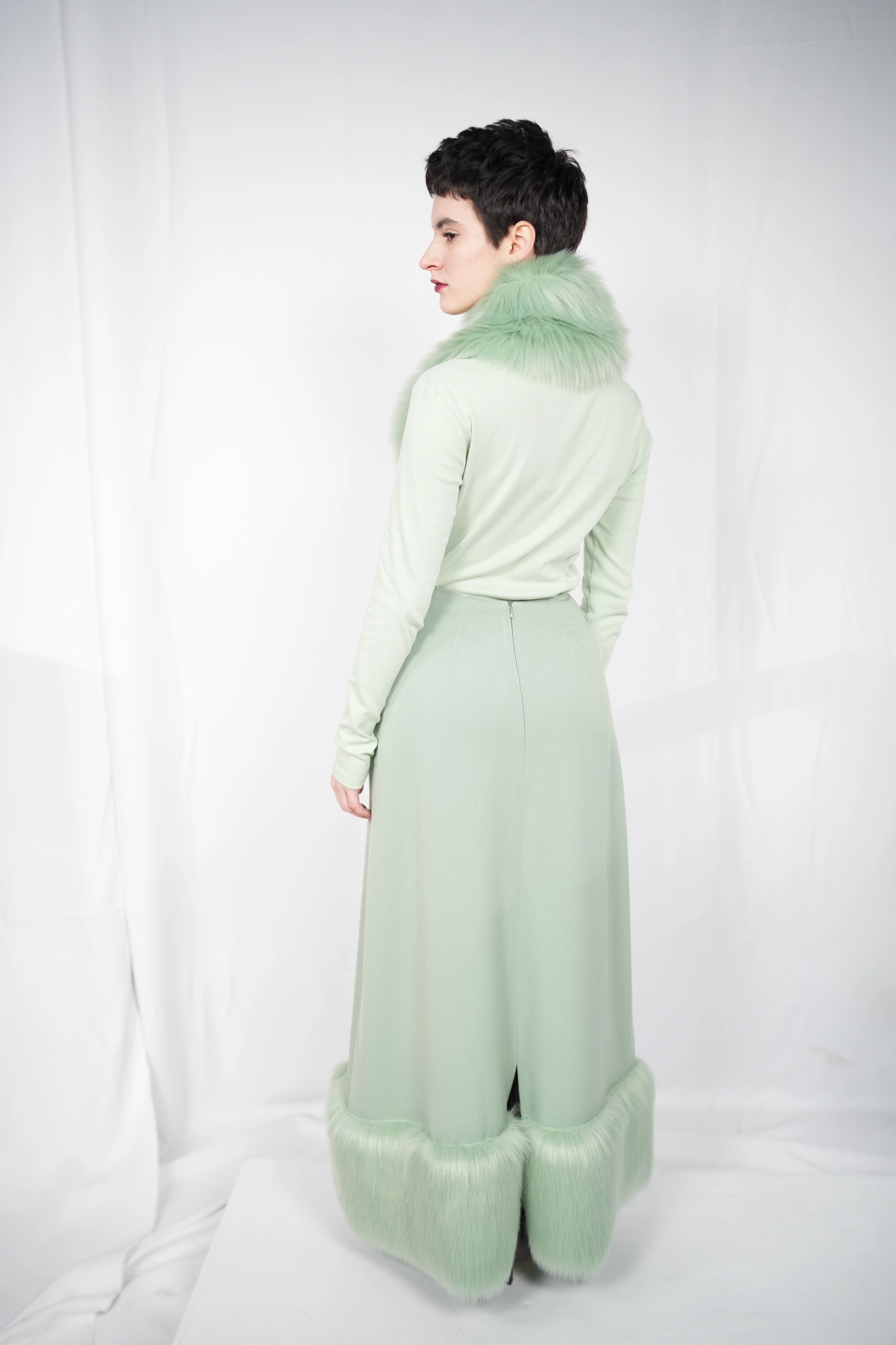 TĀYU maxi skirt with fur green