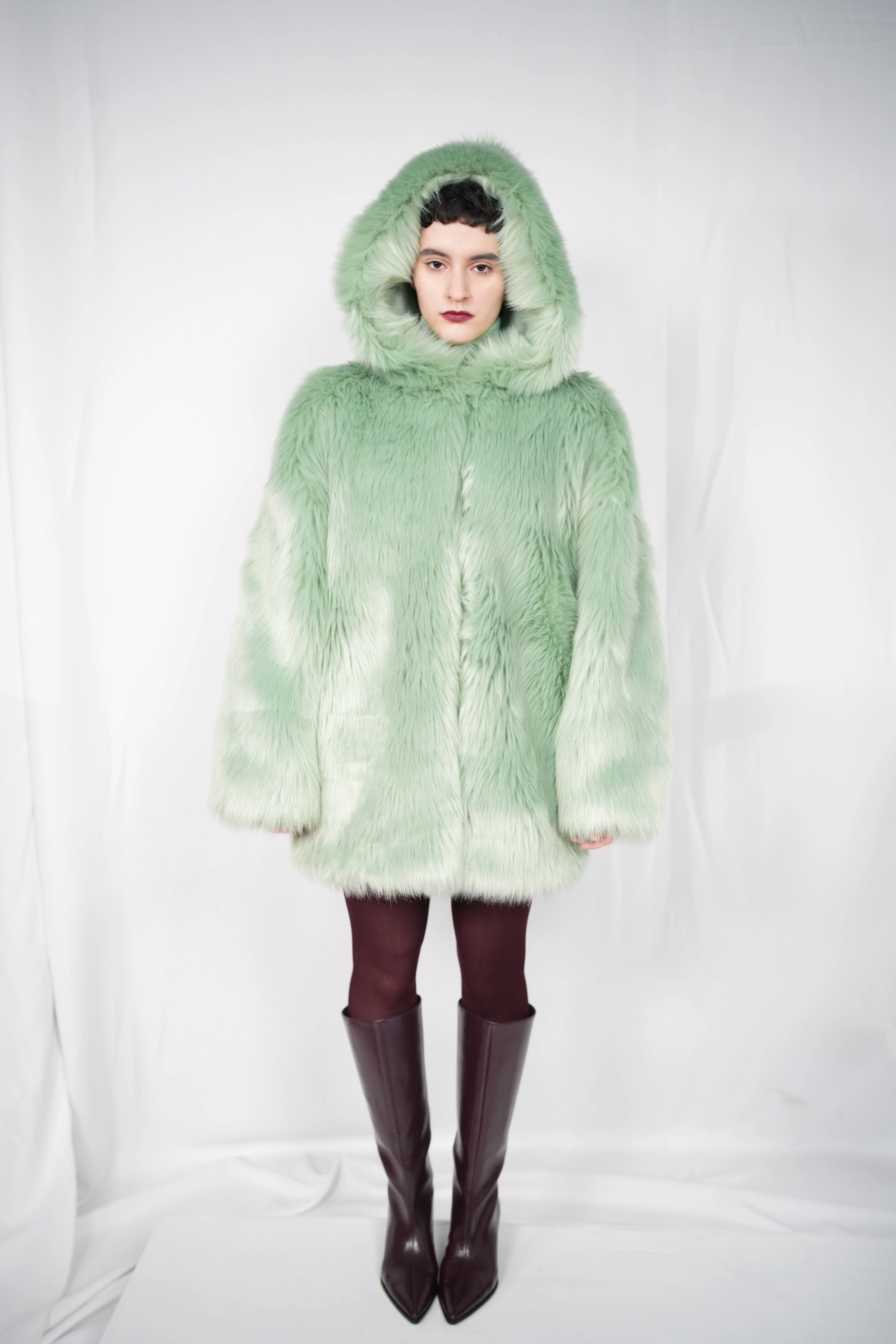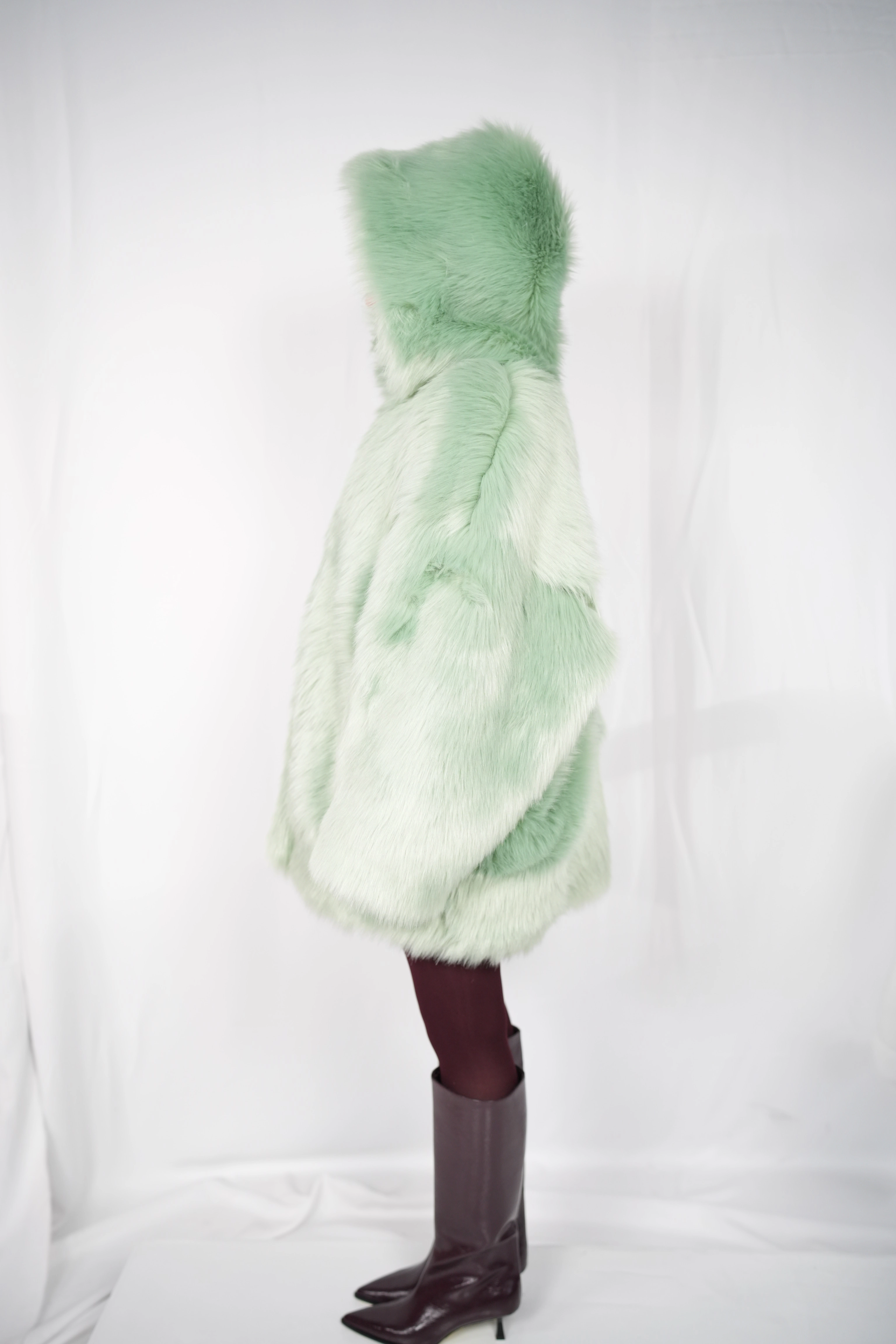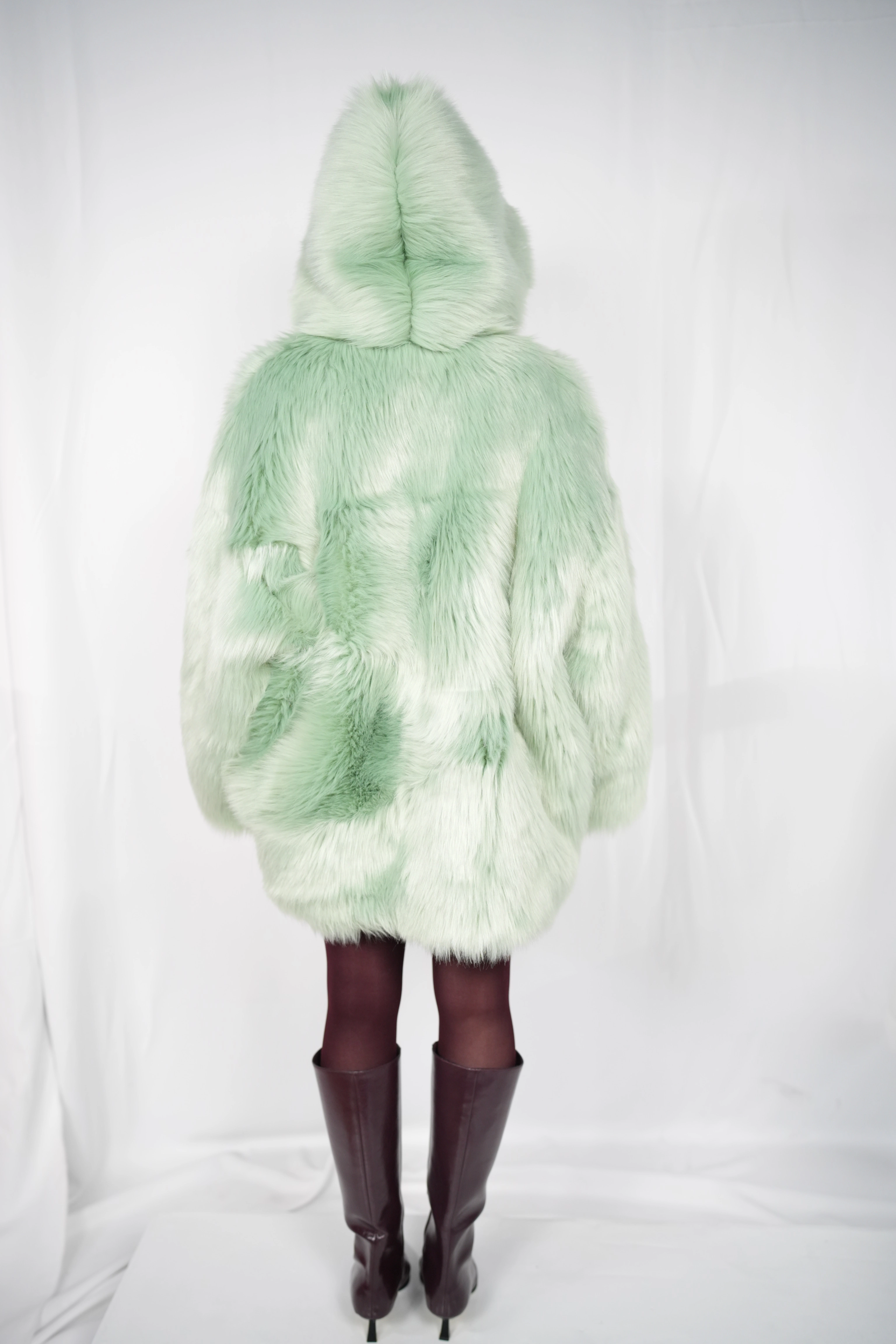 TĀYU medium-length fur coat with hood green