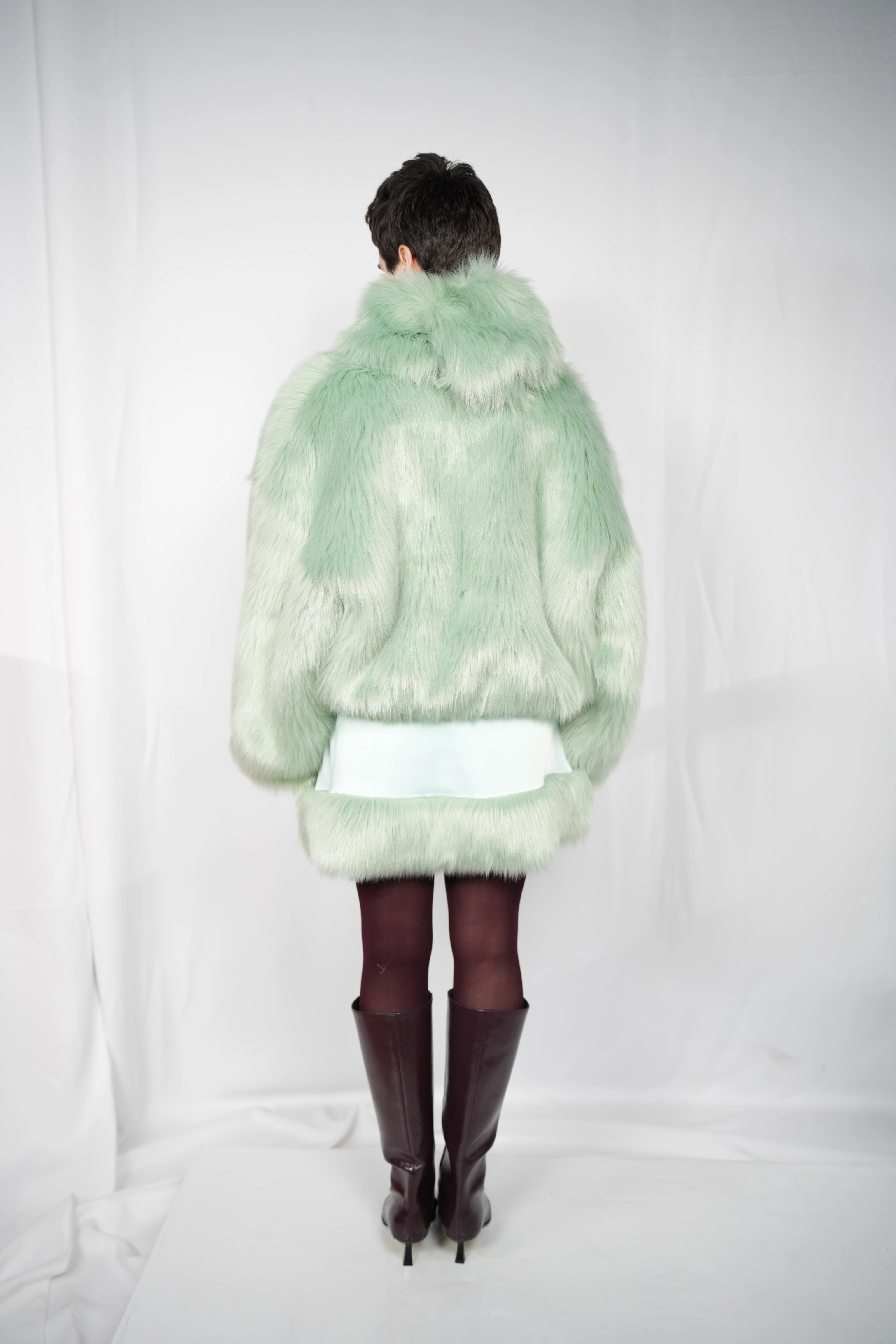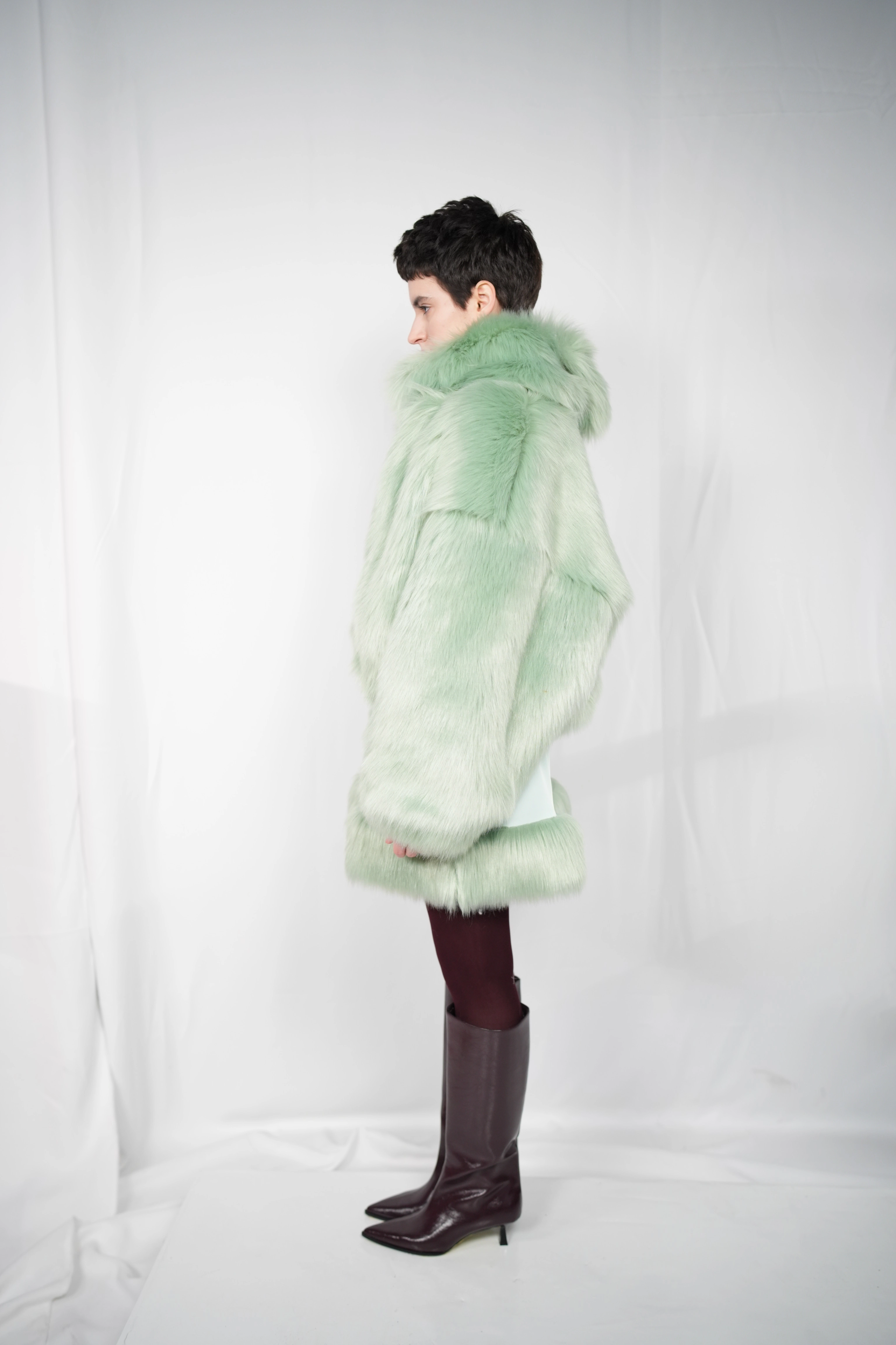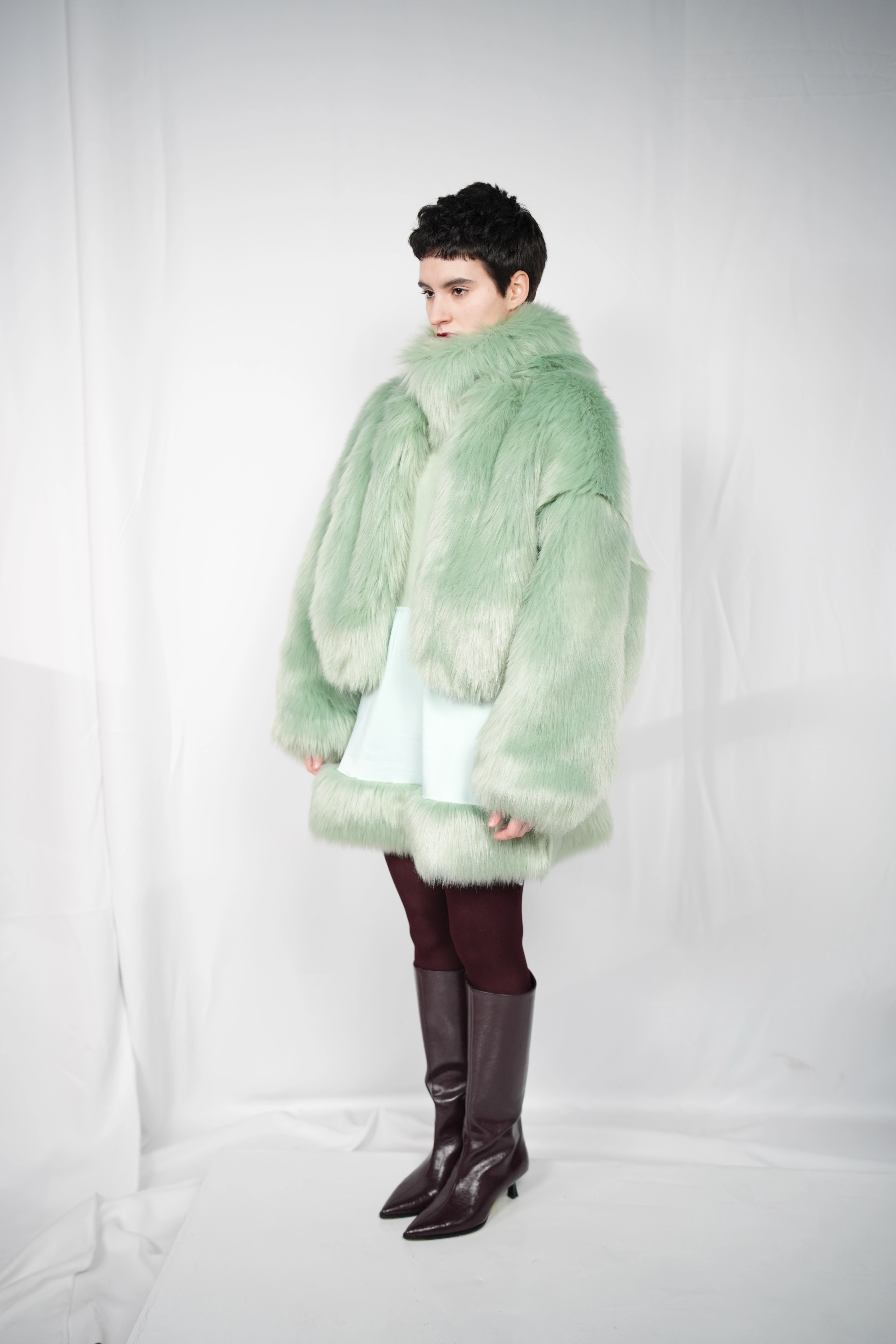 TĀYU short fur coat with collar green