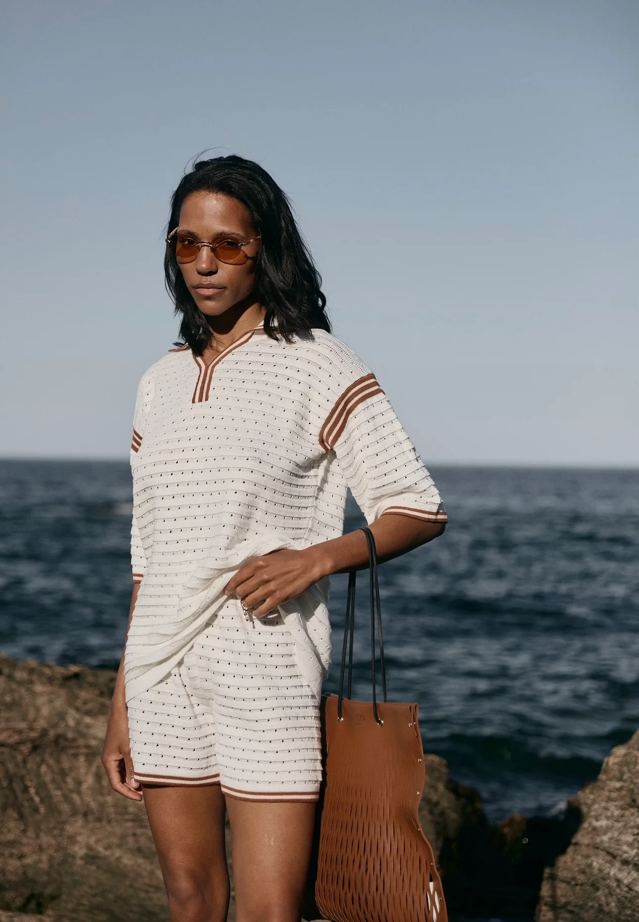 Set SAGE with a stripe milky beige