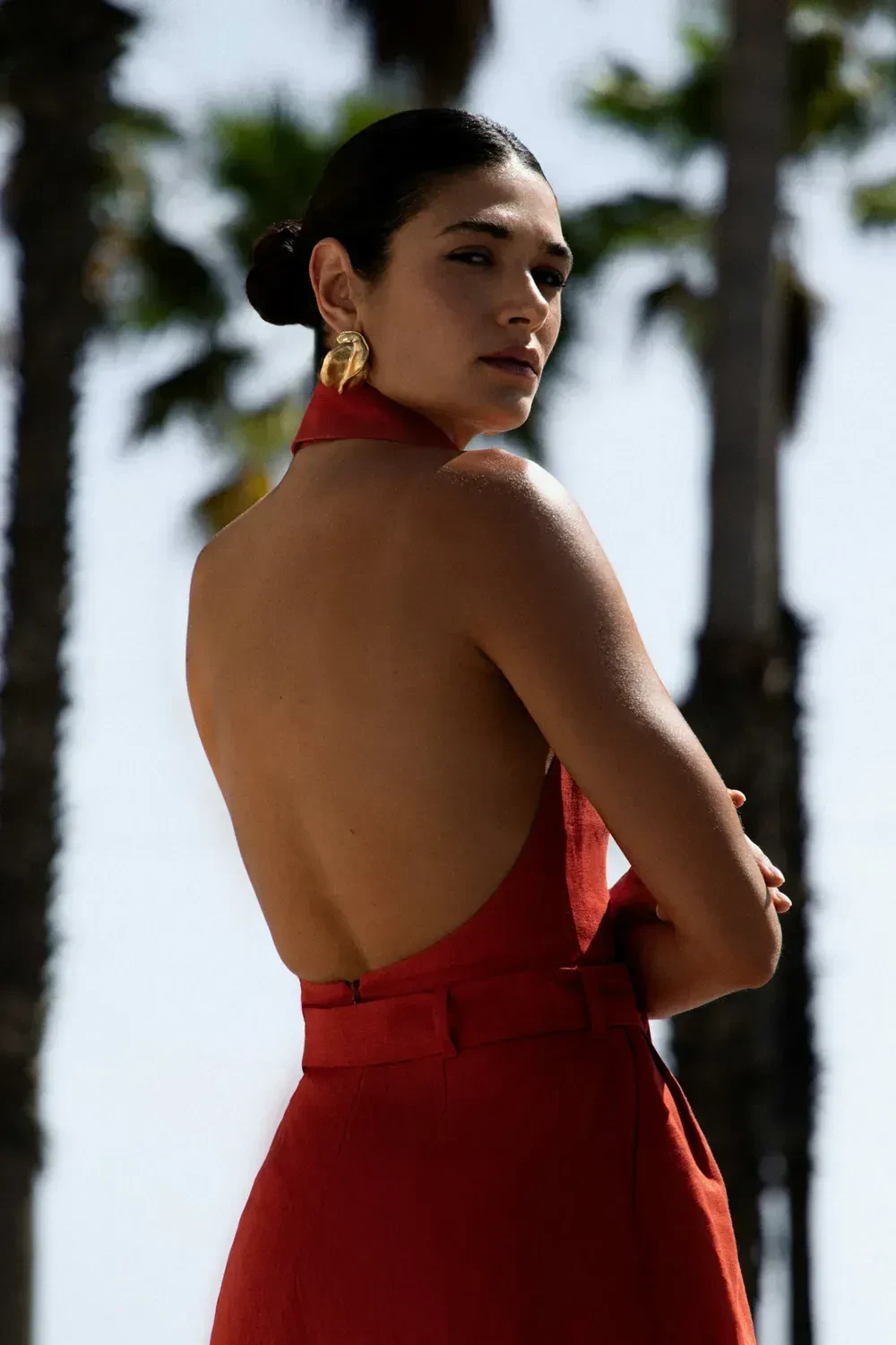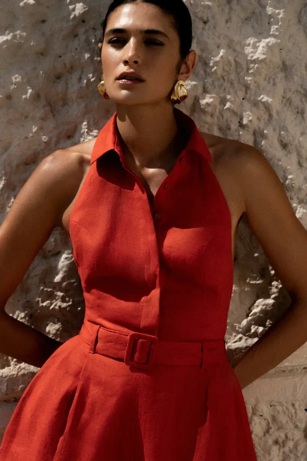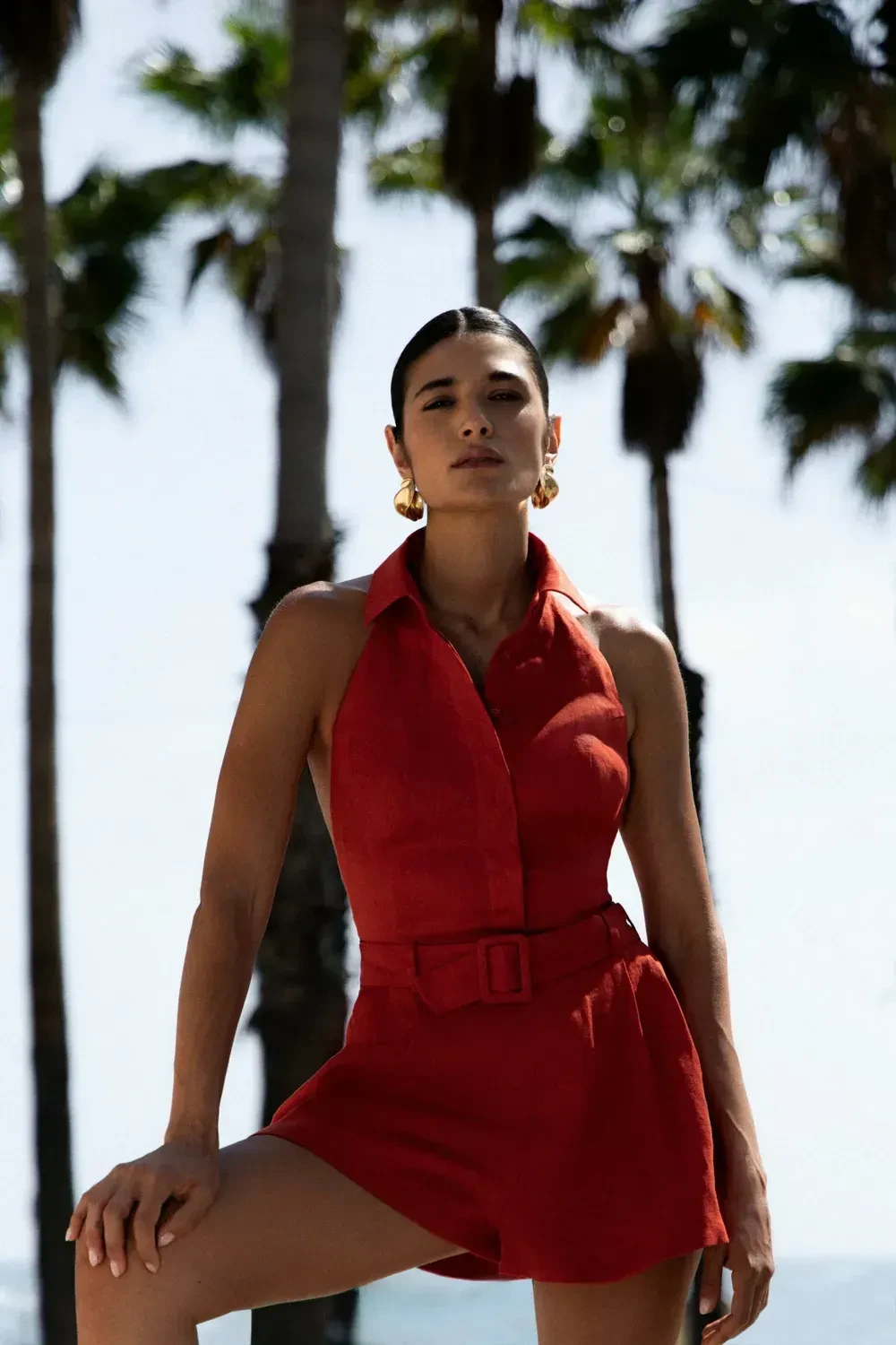 Jumpsuit REDACTOR with belt linen red