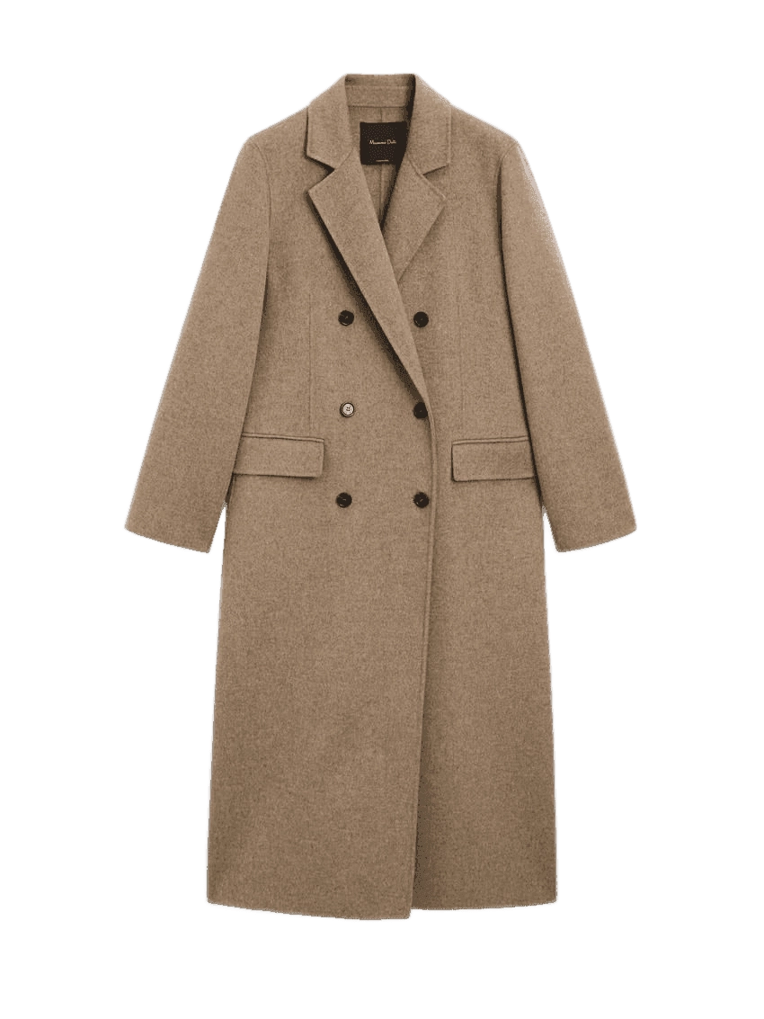 Long double-breasted coat based on wool