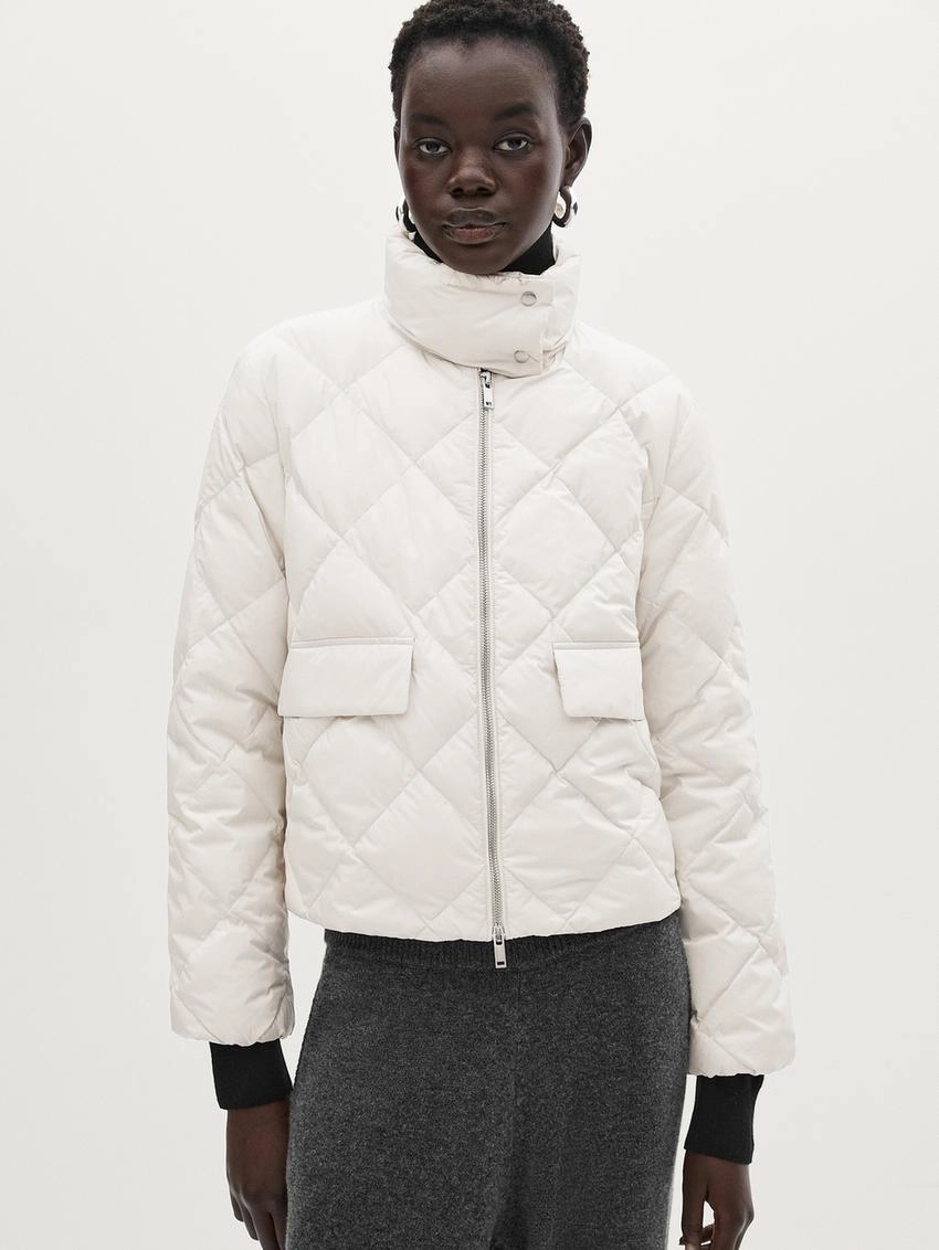 Стьобаний пуховик із високим коміром
