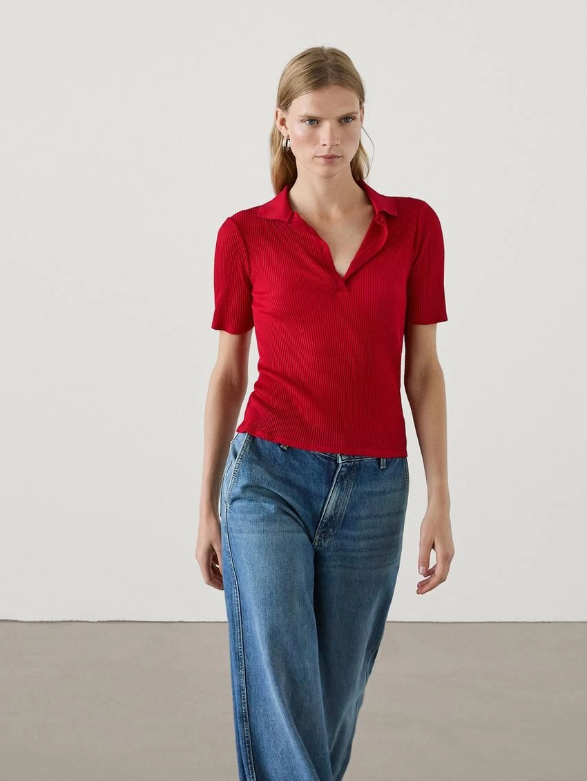Ribed cotton polo shirt
