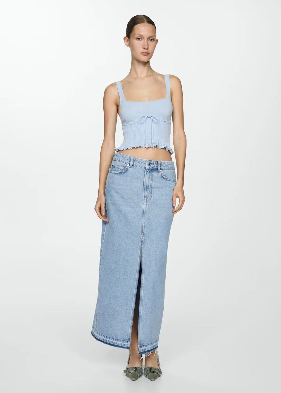 Джинсова спідниця з потертим подолом
