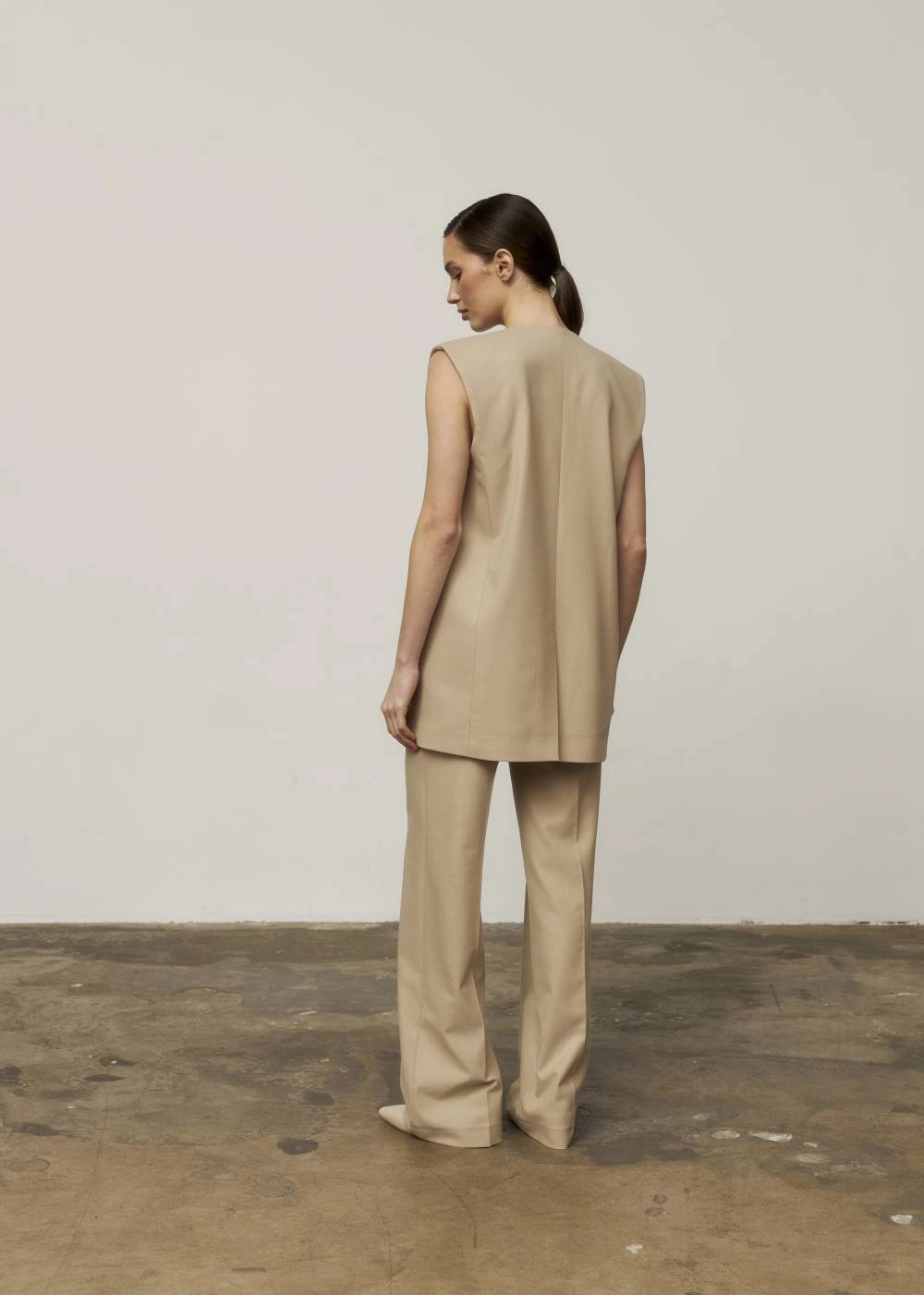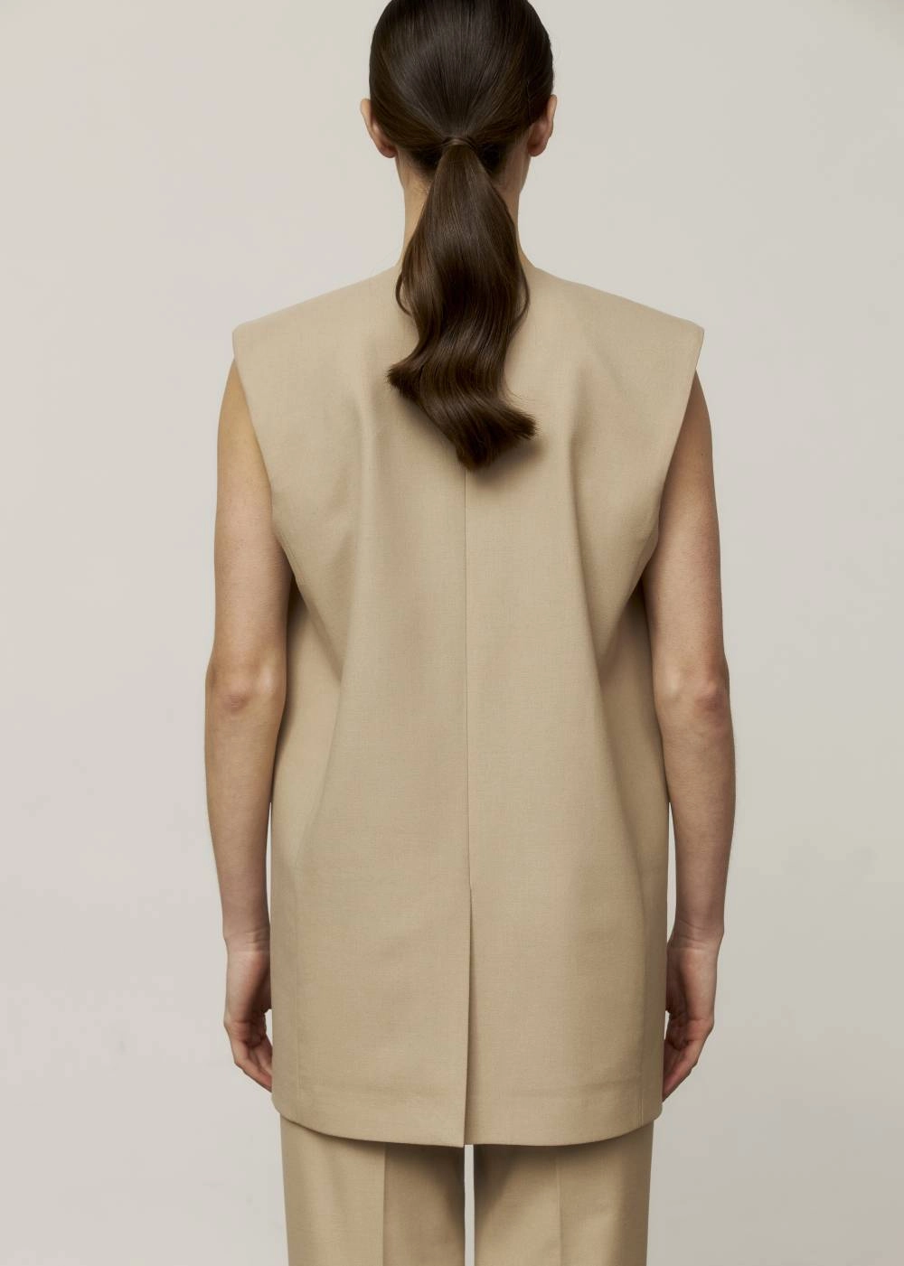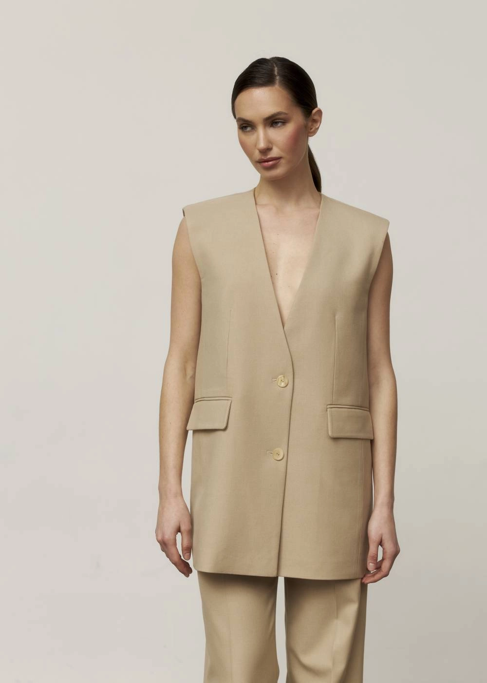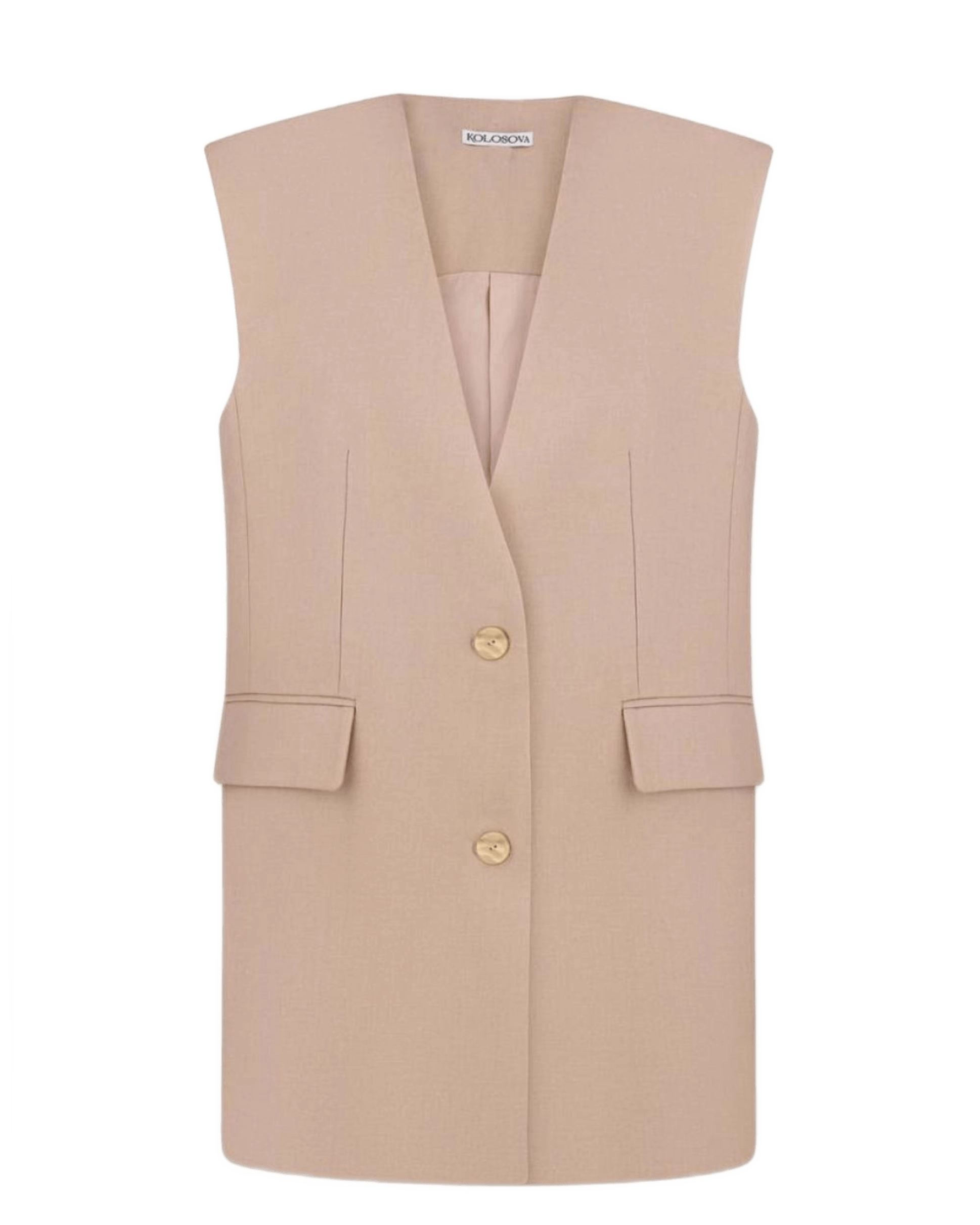 БЕЖЕВИЙ ЖИЛЕТ ПРЯМОГО КРОЮ БЕЗ КОМІРА