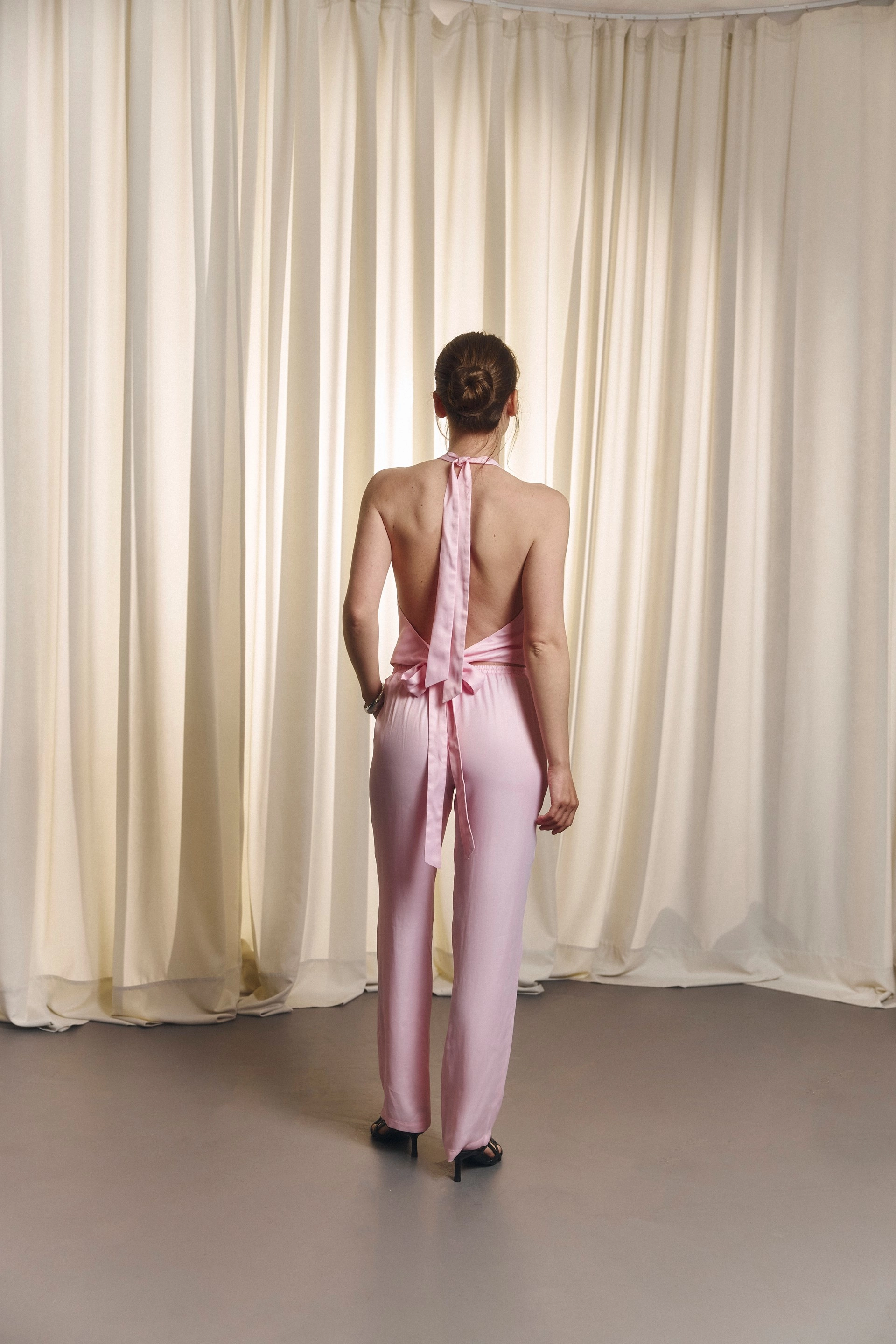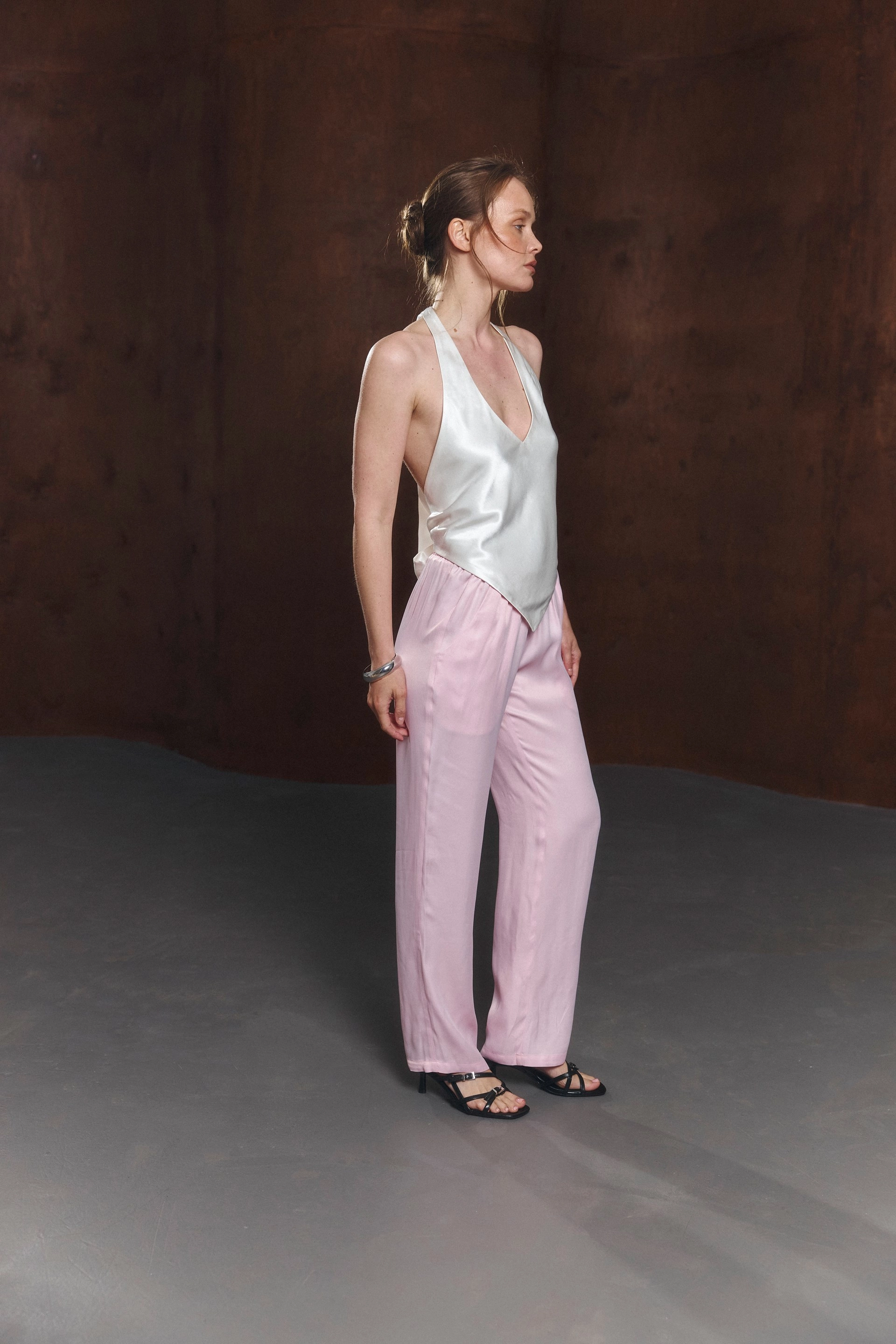 Рожеві сатинові штани