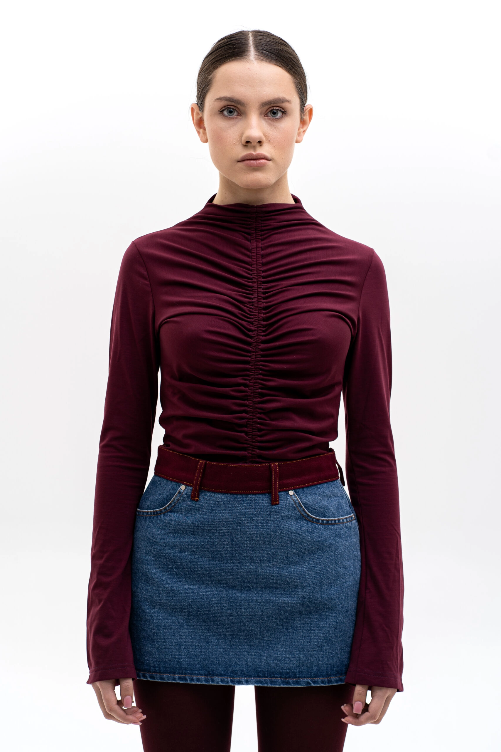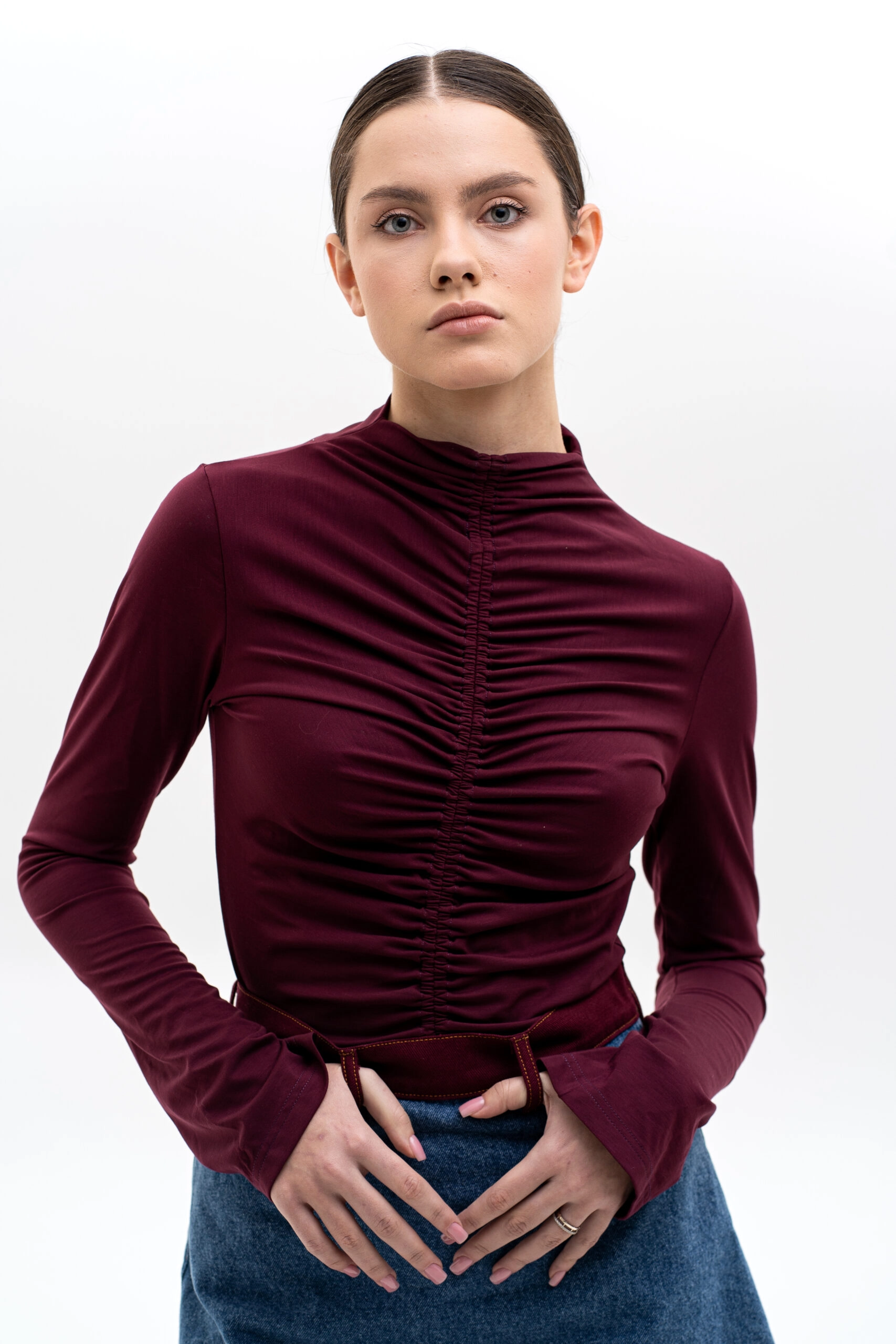 Longsleeve Match Denim "Bordo Drape" burgundy