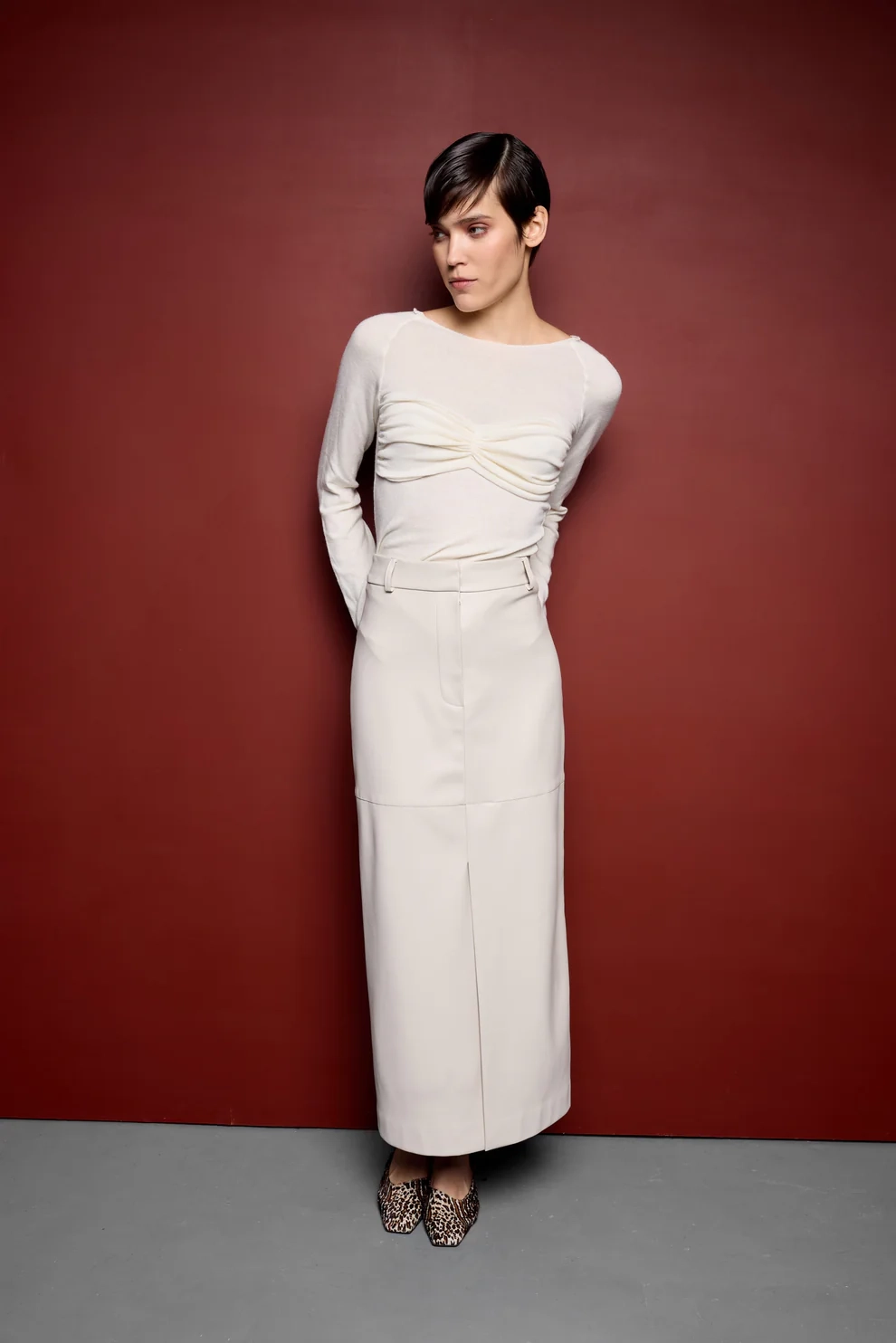 Спідниця TĀYU з екошкіри молочна