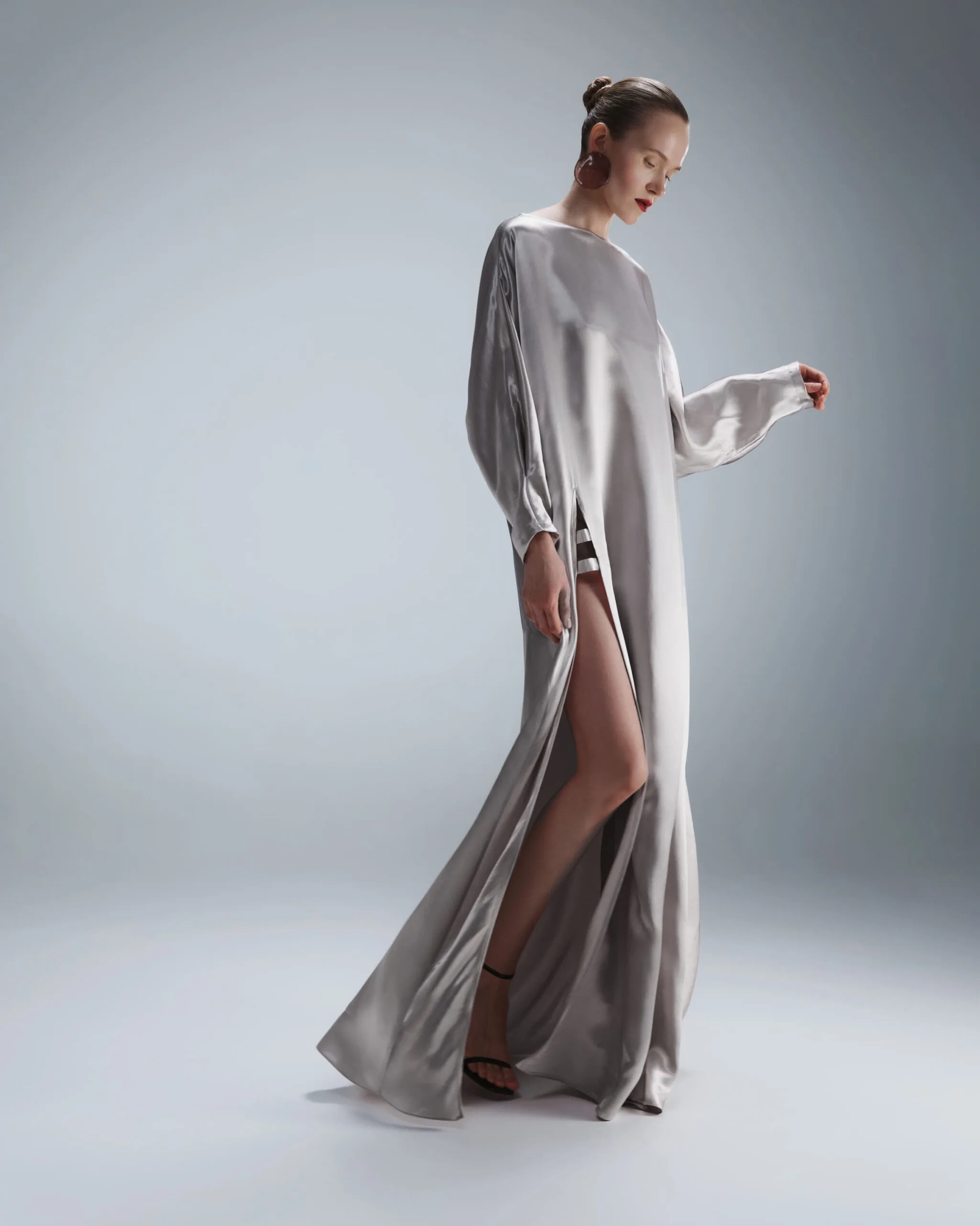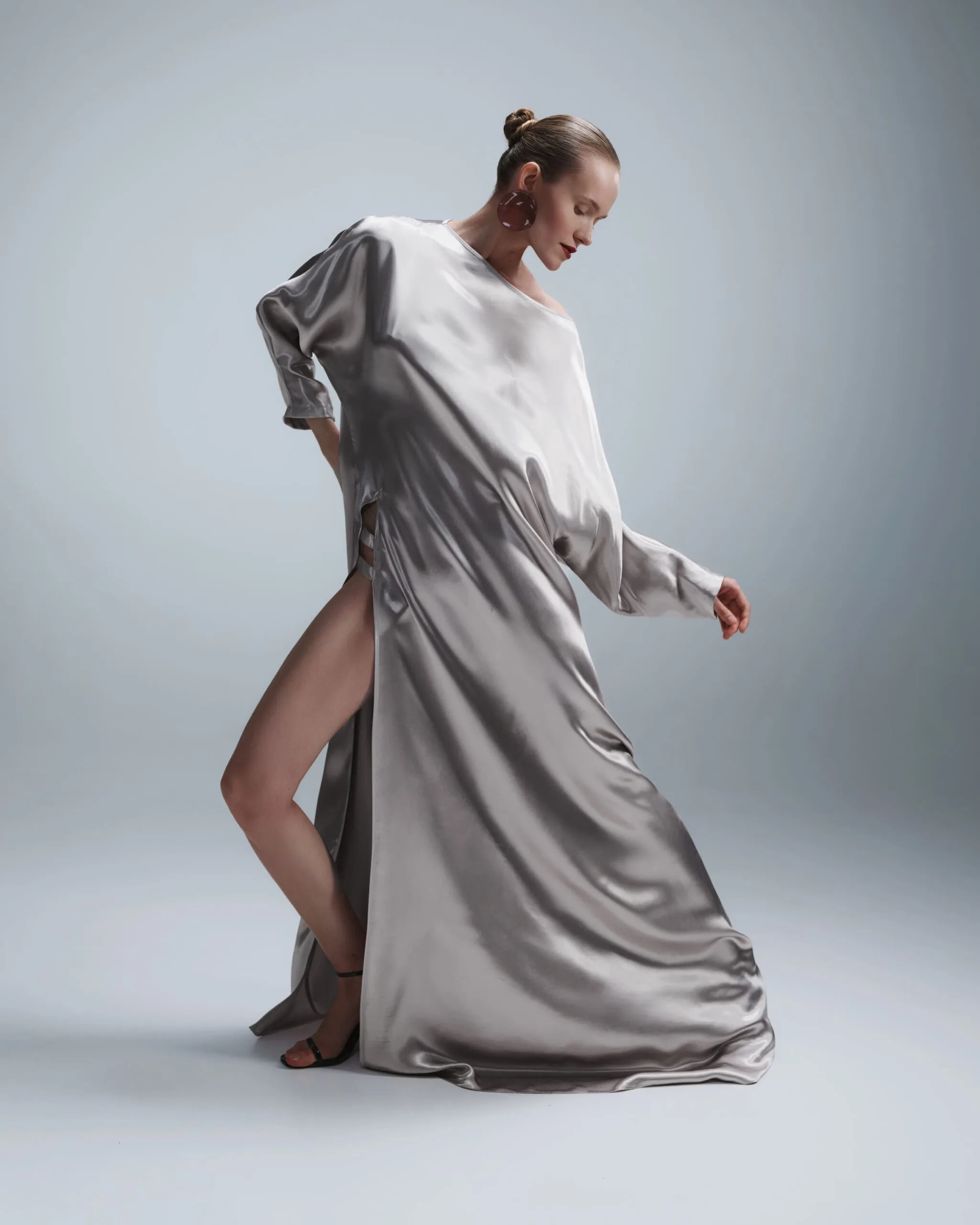 MB Studio "Wave" dress, loose cut with deep cut gray