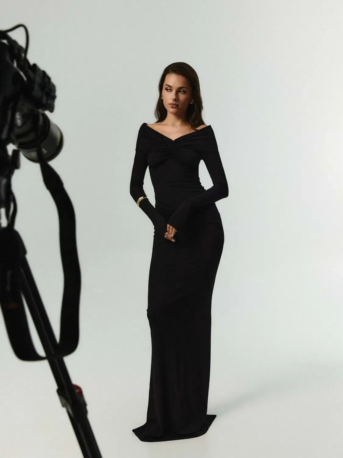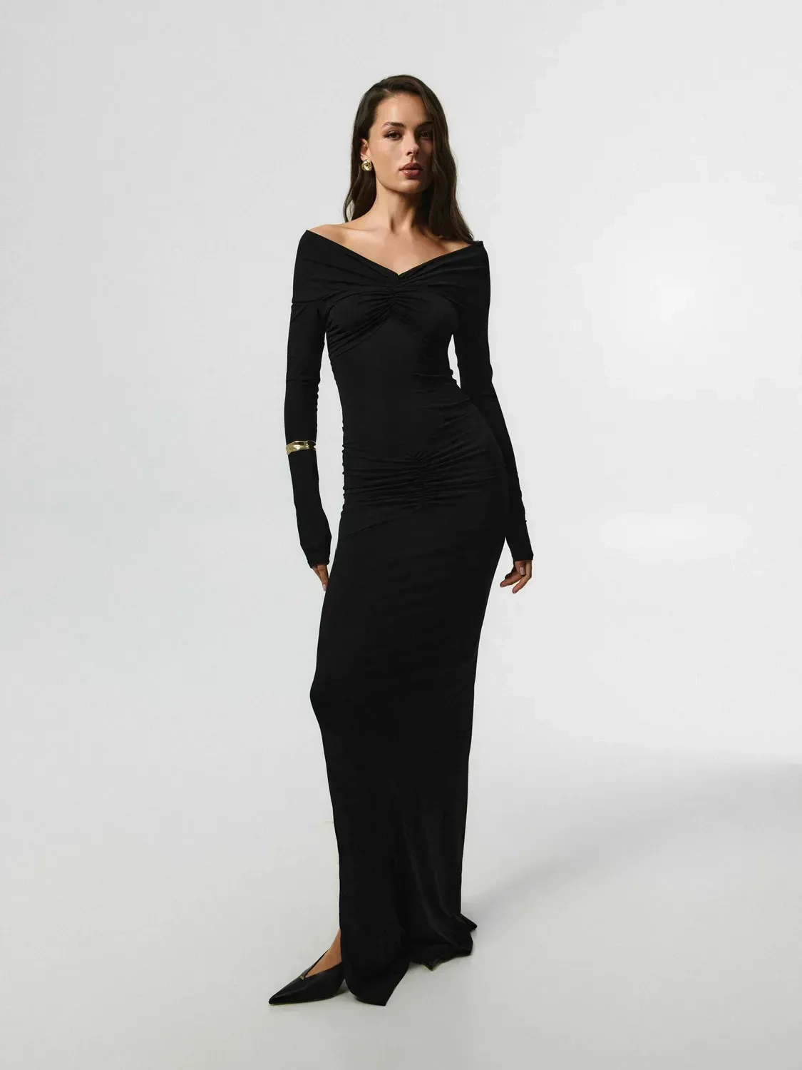 REDACTOR Off Shoulder Dress Black