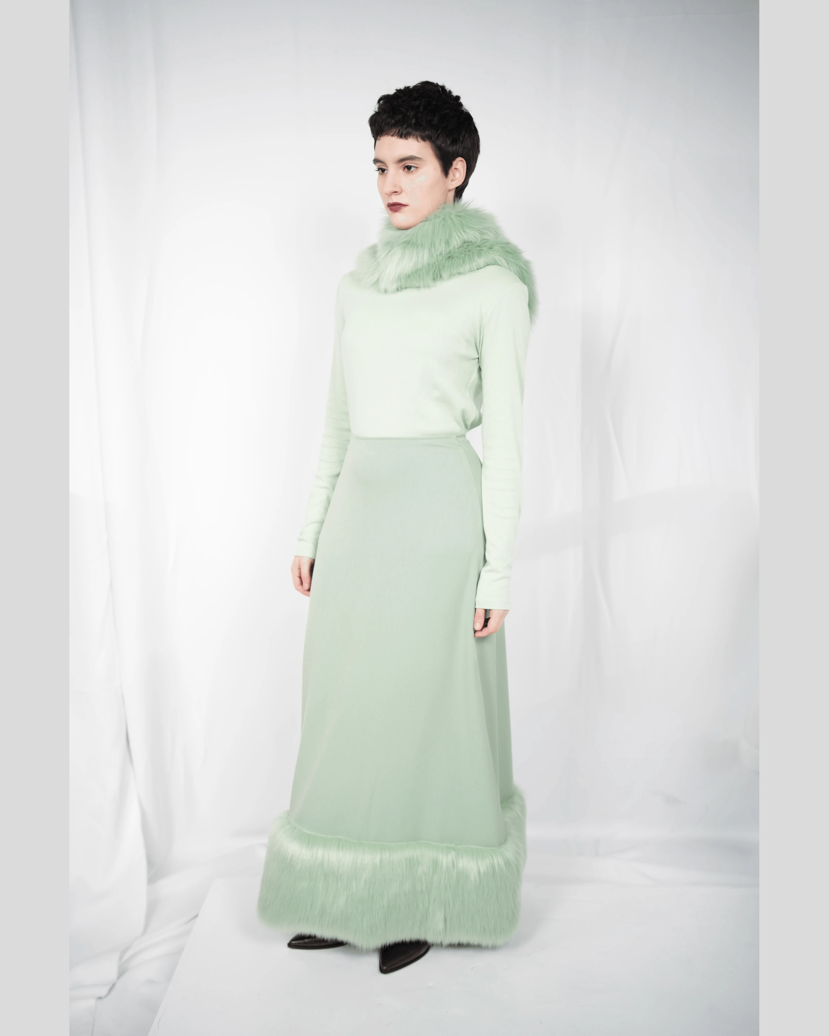 Спідниця максі TĀYU з хутром зелена