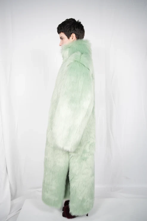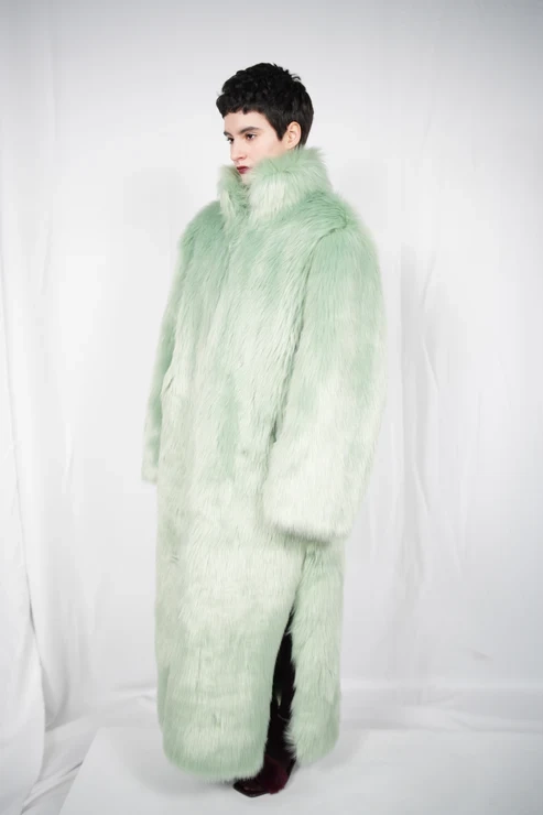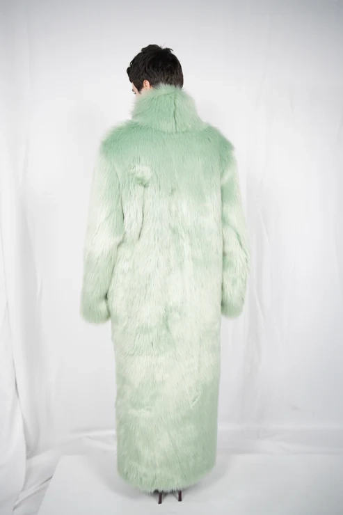 TĀYU long fur coat with collar green