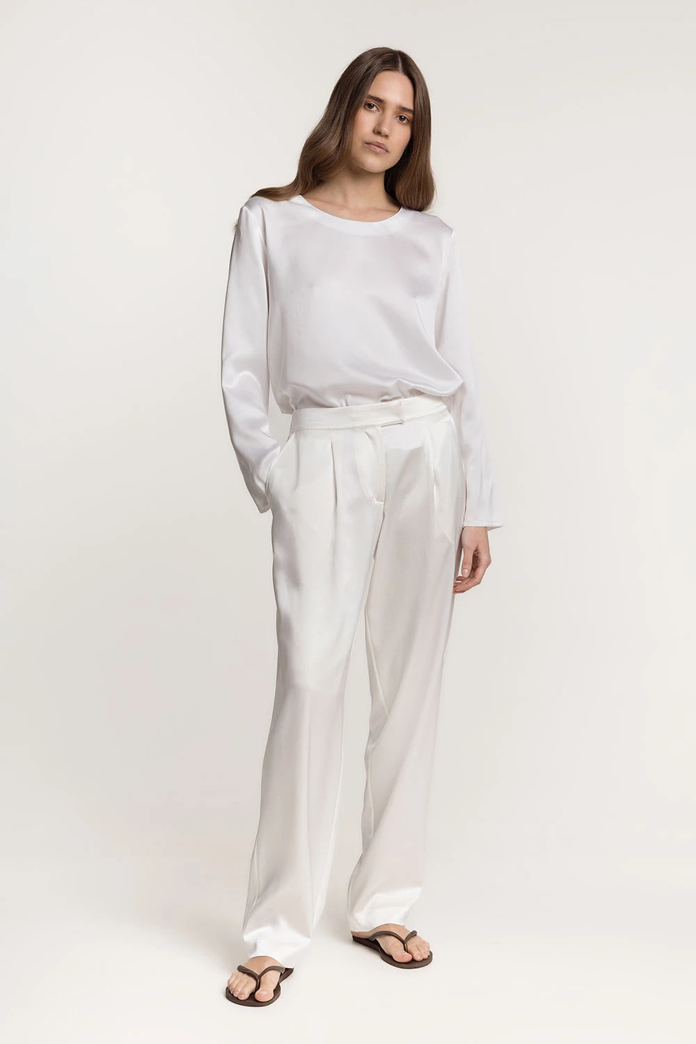 Лонгслів SERENITY "Chle " з мокрого шовку з довгим рукавом білий