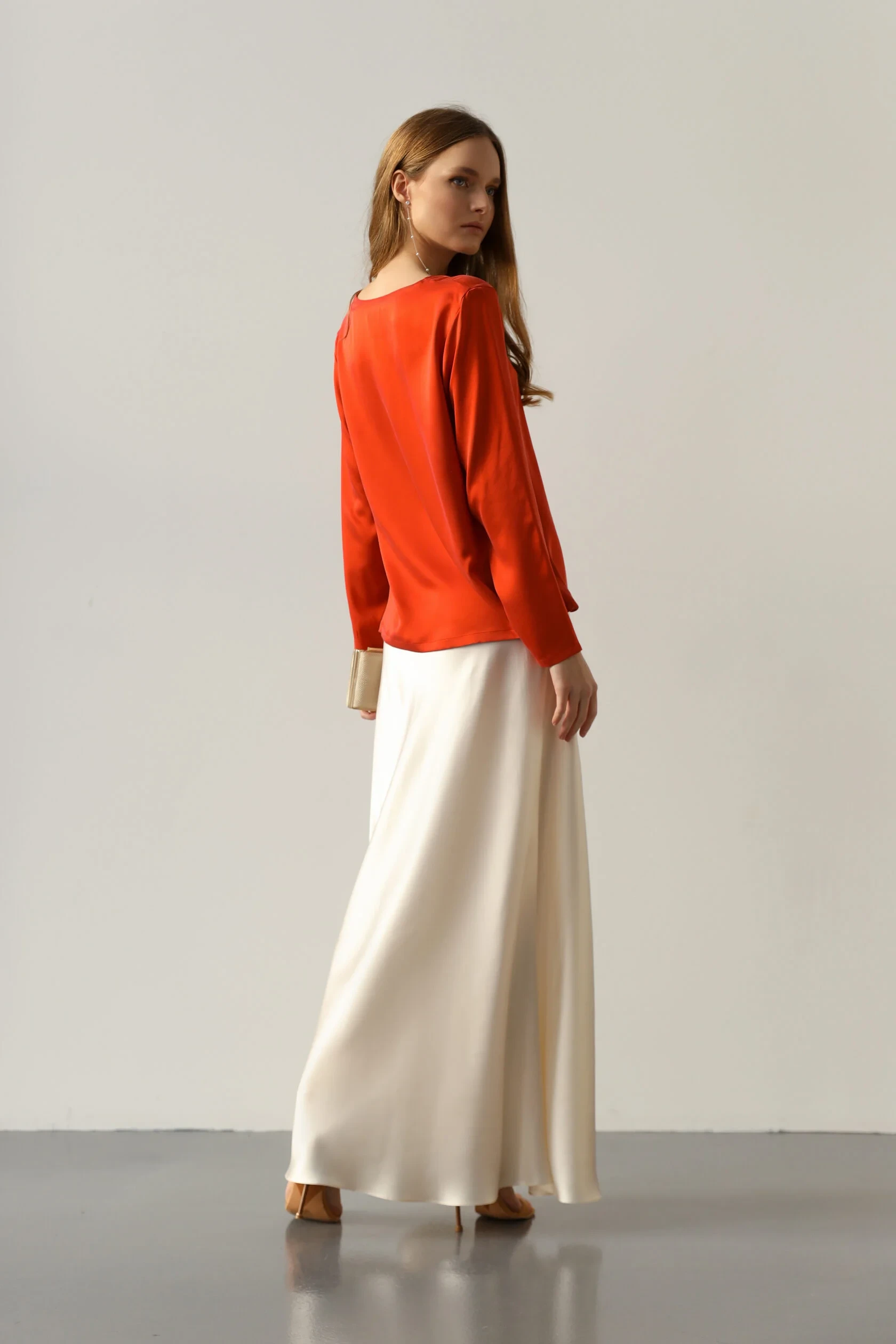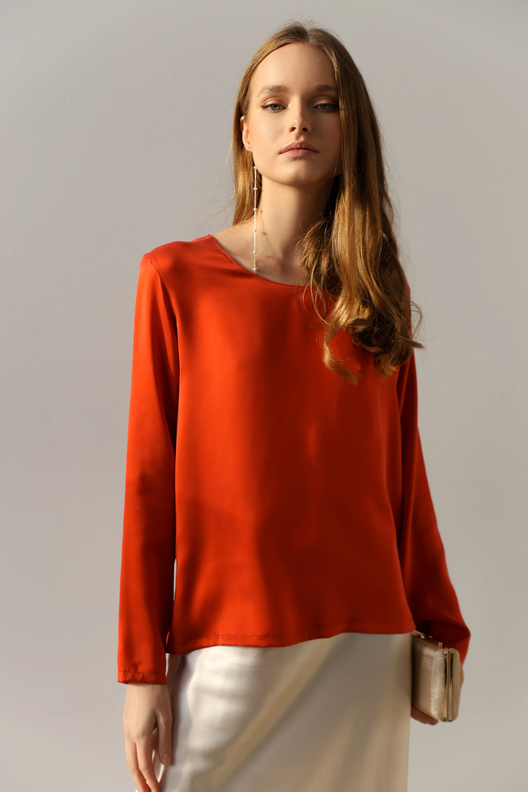Лонгслів SERENITY "Chle " з мокрого шовку з довгим рукавом червоний