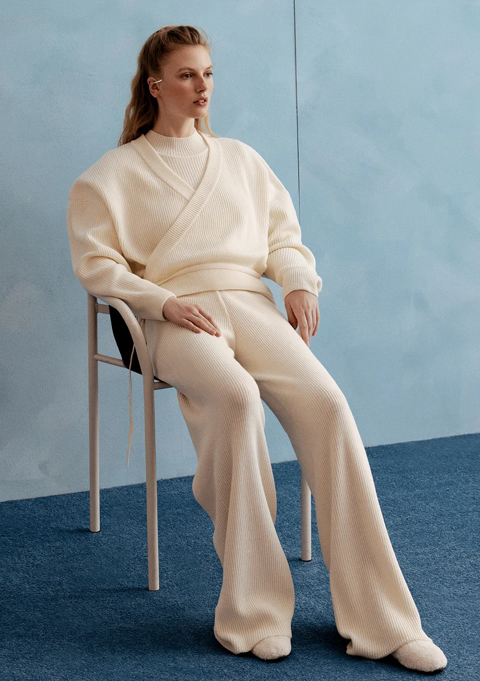 Широкі в'язані штани NORBA молочні