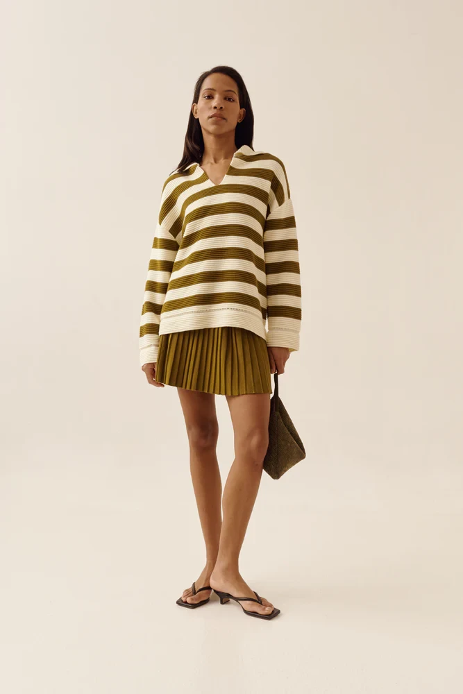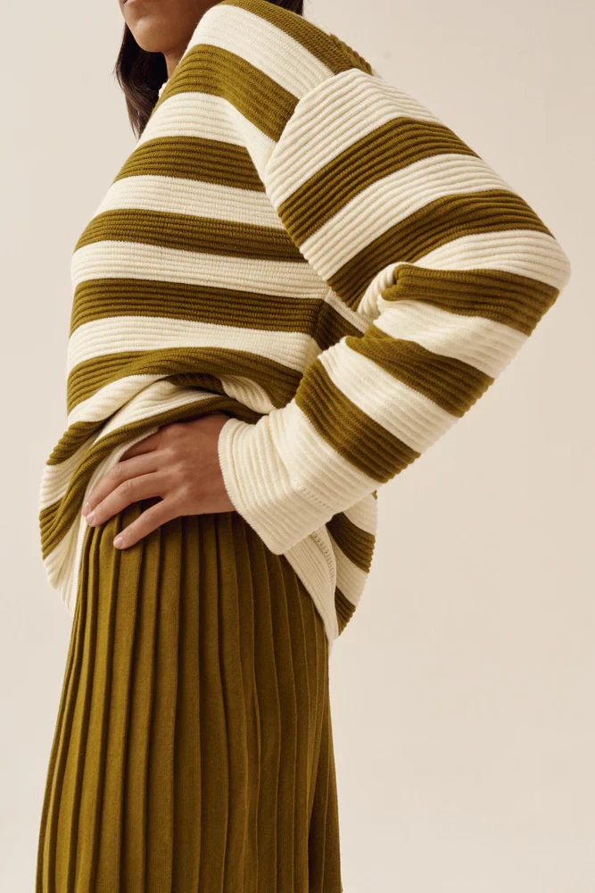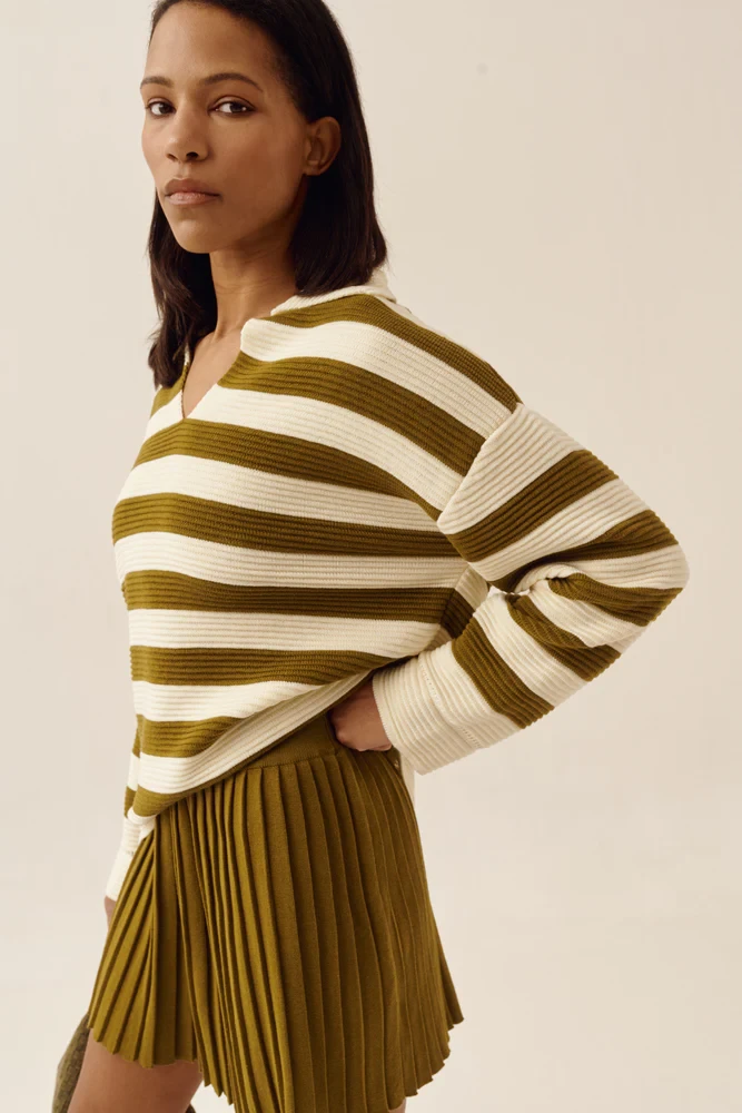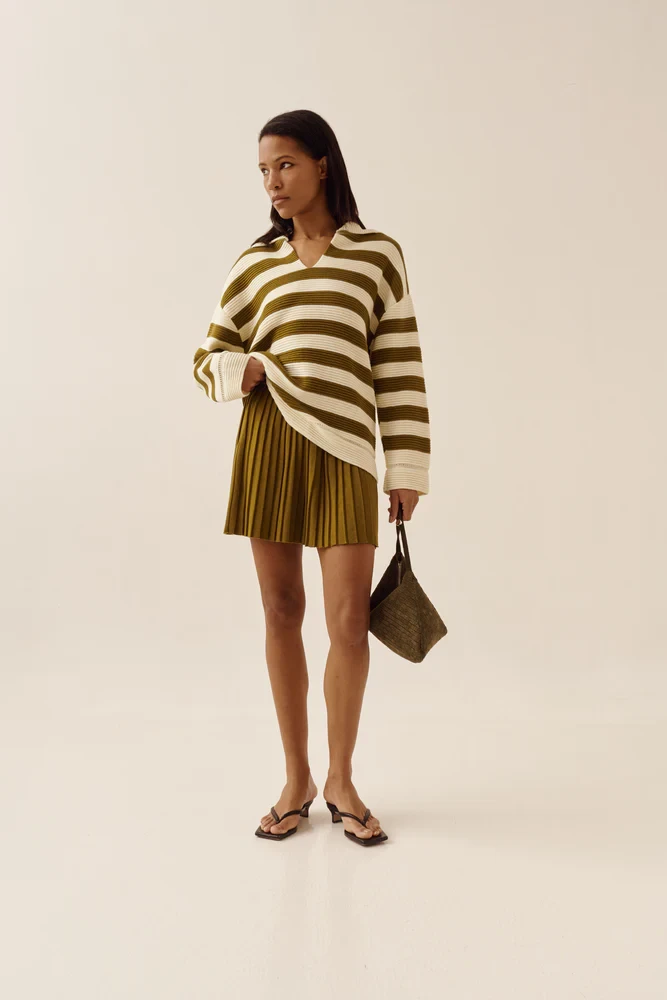 Поло SAGE оверсайз в смужку оливкове